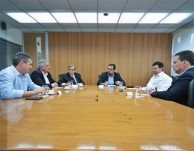 Carlos Erane de Aguiar, presidente em exercício da Firjan, Claudio Hermolin, diretor da Firjan e presidente do Sindicato da Indústria da Construção Civil no Estado do Rio de Janeiro (Sinduscon-RJ), e Marcelo Kaiuca, vice-presidente da Firjan e presidente do Sindicato das Indústrias de Produtos de Cimento do Estado do Rio de Janeiro (Induscimento), conversaram sobre a realização do evento bianual, que receberá novamente apoio do Governo do Estado.