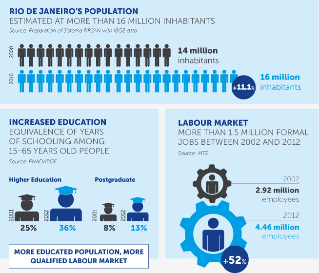 With a GDP higher than countries such as Singapore and Chile, the State of Rio has the second largest GDP in Brazil. It has a vibrant, diversified economy and it is booming, with estimated investments of U$ 98.6 billion in the coming years.